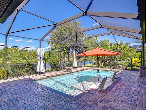 Get ready to fall in love with this STUNNING WestBay home in the prestigious gated community of Waterleaf in vibrant Riverview! Boasting 4BR/3BA plus a home office and bonus room, this residence features a thoughtful triple-split floor plan for ultimate privacy and is packed with high-end upgrades. From the paver driveway to the elegant exterior finishes, every detail exudes curb appeal and sets the stage for the beauty inside. Step outside to your amazing lanai, where a custom saltwater pool with sundeck and custom bar create the ultimate outdoor retreat. Surrounded by pond and tropical views, this space is perfect for entertaining or relaxing. When the sun goes down, the fun doesn’t stop—Gemstone architectural lights along the pool cage and landscape lighting make every evening magical. Inside, elegant French doors lead to a private office, while the chef’s kitchen dazzles with GE Profile appliances including a gas range, 42” cabinets, granite counter tops, massive island with bar seating, and a spacious pantry. The kitchen flows seamlessly into the breakfast nook and great room with in ceiling speakers, and sliders framing sparkling pond and pool views- creating the ideal indoor/outdoor living space. The luxurious primary suite features a huge walk-in closet, lanai access, and a spa-inspired bath with dual sinks, make-up vanity, and separate soaking tub and shower. Two additional bedrooms share a private bath, while a fourth bedroom and nearby pool bath make the perfect guest suite. A large bonus room at the back offers endless versatility and is pre-plumbed for a wet bar. Upgrades include Halo LED whole-house air purification system (2025), surround sound speakers with subwoofer (2024), overhead garage storage (2019), water softener system (2017), and epoxy-coated lanai (2024). Residents of Waterleaf enjoy ultra-fast WiFi and cable included, plus resort-style amenities: pool, clubhouse, basketball courts, playgrounds, dog parks, and scenic walking trails. Conveniently located near top-rated schools, shopping, dining, and I-75, this home truly has it all. A rare find in one of Riverview’s most sought-after communities—this home is unforgettable!