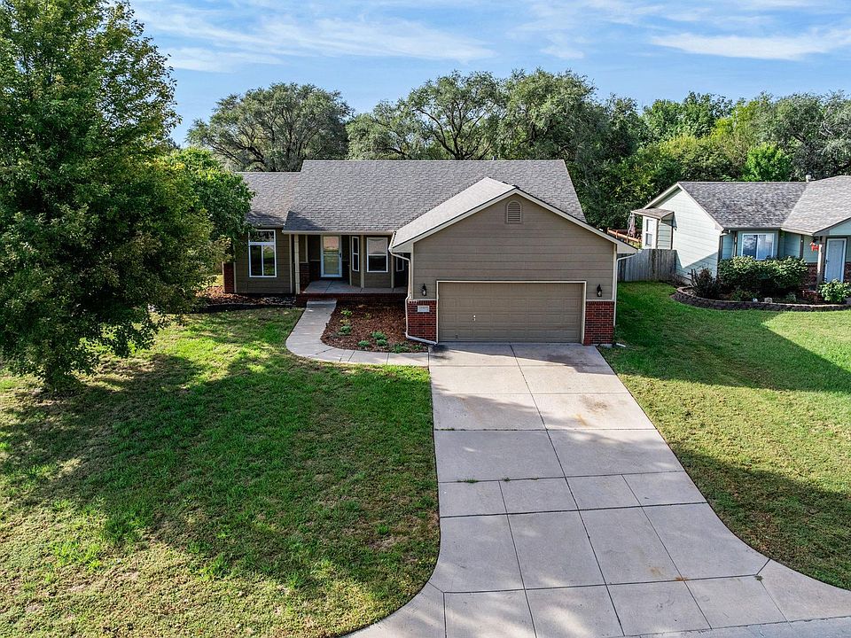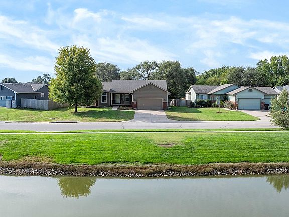 Welcome to a home that fits every chapter of life. This 4 bed, 3 bath ranch in Goddard School District offers a thoughtful split-bedroom layout with vaulted ceilings and over 2,700 finished sq ft. The main floor features a spacious living/dining area, kitchen eat-in space, and a primary suite with private bath. New carpet adds a fresh touch to the secondary bedrooms. Downstairs, the view-out basement includes a large family room, full bath, and guest bedroom, plus plenty of space for hobbies, play, or extended stays. Enjoy peaceful evenings from your deck in the fenced backyard, or take a stroll on the neighborhood sidewalks around the lakes. With an amazing water view right out front and convenience to everything west Wichita offers, this home is ready for your next chapter!