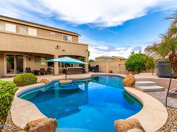 Not age-restricted and located in the highly acclaimed Peoria School District, including Liberty High School! This spacious home sits on a large lot and is loaded with upgrades. Enjoy your private pool and rare 4-car garage—two full-size double garages, perfect for all your toys and storage needs. You'll find a full bedroom and bathroom downstairs, ideal for an in-law suite, guests, or older kids. Major updates already done for you, including two brand-new AC units, new windows, water softener and reverse osmosis for drinking water. Nestled in the popular Crossriver neighborhood, the home sits next to a greenbelt for added privacy, and is just a short walk to basketball, tennis, pickleball courts, and a playground. Move in and start living the lifestyle you've been waiting for!