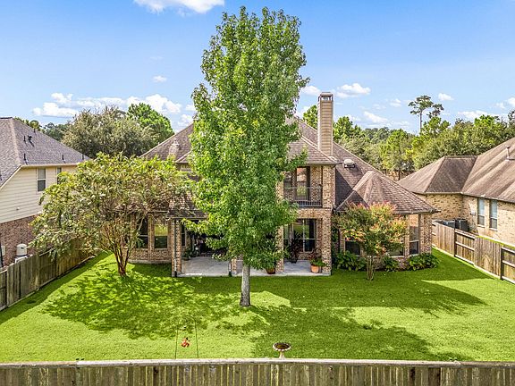 Never flooded & boasting a brand-new Nov ’25 roof w/ transferable warranty, this Highland Home blends elegance, privacy & thoughtful design. No back neighbors! Grand 2-story foyer w/ 20’ ceilings, wrought-iron staircase, crown molding & 8’ doors leads to a private office w/ French doors & plantation shutters. Formal dining opens to a gourmet kitchen w/ granite, SS oven & dishwasher (2025), gas cooktop, island, tumbled backsplash & under-cabinet lighting. Open living area highlights a floor-to-ceiling stone fireplace. Primary retreat offers dual sinks, soaking tub & curbless shower, plus a downstairs guest suite for flexibility. Upstairs features a game room w/ wainscoting & balcony access, media room w/ half bath & 2 secondary suites. Outdoor living includes wraparound covered patio, French drains, sprinklers, 3-car garage & 2019 HVAC. Enjoy Eagle Springs resort-style amenities—pools, ponds, trails, fitness ctr & parks!