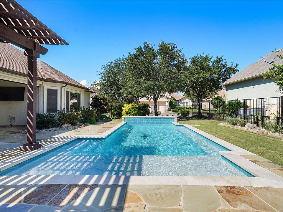 Spectacular,corner lot home complete with backyard oasis. Gorgeous gunite pool boasts water feature,outdoor kitchen,pergola and patio area with privacy screens. MANY upgrades to include custom cabinets,countertops,flooring,plantation shutters,toilets and designer wallpaper. The perfect floorplan. Large living room features built-ins. Chef’s kitchen is open to living area. New roof,paint and carpet. Private primary bath compliments the master suite. Massive primary closet. Abundance of storage. 3 car garage. You will not find a more impressive home.
