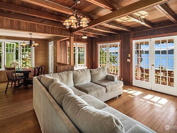 Waterfront sanctuary like no other. This lovingly renovated 3 bedroom 2 & 3/4 bath 1920s home has been in the same family for 5 generations. An easy walk-in, located minutes from the Northend ferry & a world away from noise and bustle. 100’ of WFT & tideland. Relish 180° views of Puget Sound & the Olympics all year with covered wrap-around decks. Delight in hidden sleeping spots, reading nooks & all the modern conveniences of this well-crafted home. An open main floor & the warmth of clear fir surround you. The fully-updated separate 2-bedroom “apartment” in the lower level can be easily re-connected. Enjoy the waterside boathouse/shop, the garden patio or fresh eggs from the chicken coop. Live in one of Vashon's dream locations.