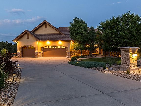Gorgeous walk out ranch in prestigious Bell Cross Ranch. Backing to 60 acres of open space with Pikes Peak views, this beautiful home sits on 3 acres of professional landscaped yard and native grass. Recently updated inside with solid 5" plank walnut floors and stone, this home shows like a model. Main floor is open and flows wonderfully from the spacious kitchen to the vaulted living room. Gourmet kitchen features a huge slab granite island, Sub Zero and Viking appliances. Master suite is oversized with builtins and gas fireplace, plus a large master bath with walk in closet. Main floor guest bedroom and bath, too. Walkout basement with custom built ins and gas fireplace, plus two additional bedrooms and bath. Built in speakers throughout. The exercise room is large enough to be an in law suite or nanny quarters and features its own 3/4 bath. Bell Cross is a hidden gem just east of Parker. Convenient to DTC or DIA.