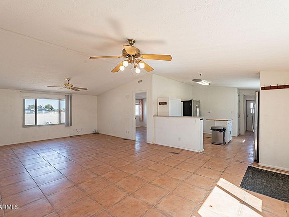 Looking for space for toys, horses, or both? This 3-bed, 2-bath manufactured home sits on over an acre! Features include a spacious eat-in kitchen with maple cabinets, vaulted ceilings, and a great room. Window blinds, ceiling fans, and neutral carpet & ceramic tile in all the right places add comfort throughout. The primary bath has an easy-entry shower. Recent upgrades include energy-efficient windows and a newer A/C system. With your touches this home will be the perfect place for you and your horses with fencing, a corral, and shade already in place. Two storage sheds provide extra space. Shared well managed by neighbors. Plus, indoor laundry with storage! A great opportunity for country living!