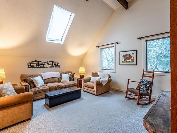 A terrific condo just a short walk to the ski trails! With a very generous, recently redone deck, AND lovely views, it is excellent for entertaining or relaxing. The condo association has completely renovated decks, walkways, siding and the roof, with the special assessment completely paid off. All ready for your enjoyment at no extra fee. Windows and sliders have been upgraded as well. The primary suite is situated on it's own level for complete privacy. 2 other bedrooms and full bath share another level. The living room has soaring ceilings with a cozy gas fireplace and the upper area features a sunny kitchen and slider to the phenomenal deck. Come and discover the unparalleled recreation at Quechee Lakes. Enjoy downhill, cross-country skiing, skating, pickleball, paddle tennis, indoor and outdoor pools, 2 fabulous golf courses, tennis, hiking trails etc. Kingswood 1 assoc. has a one-time buy-in fee of 3 month condo fees.