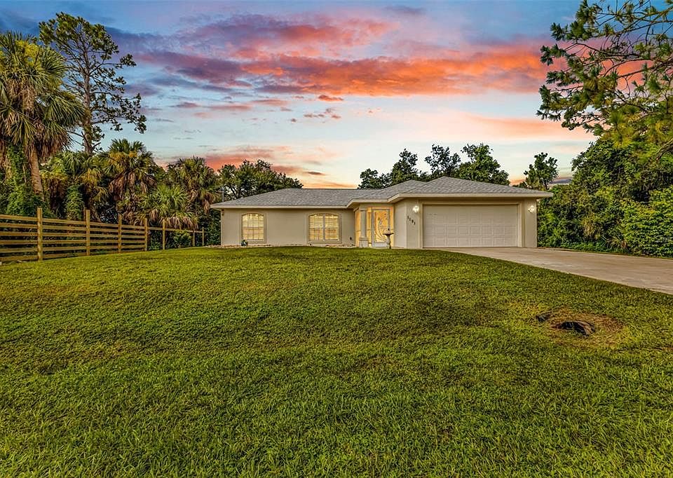 Welcome to 1191 Nebraska Ln, a three bedroom, two bathroom, two car garage home in the fast-growing and desired city of North Port in Sunny Southwest Florida! Here you will find a NEW ROOF in 2023 and a split-floorplan with just under 1300 square feet of living space with tile and laminate flooring throughout. Your main bedroom suite is on the right side of the home along with the laundry room and garage, your living room, dining room, and kitchen are located in the middle with access to the lanai through sliding glass doors, and the spare bedrooms and second bathroom are located on the left of the home, giving this home a convenient and often desired layout! Make sure to check out the VIRTUAL TOUR and 3D FLOORPLAN to get a better look of this home before calling your favorite real estate agent to schedule a private tour of your own. Nebraska Ln is located in a nice area of North Port, “off Chamberlain Blvd”, which is conveniently located near US41 & I75, and very close to three different shopping centers including Price Crossing just about 2 miles away. This home is perfect for first-time homebuyers, someone looking to buy a second home, vacation home, or even rental property! Cash, conventional, VA and FHA buyers are all welcome! Come see this cute and affordable home today!