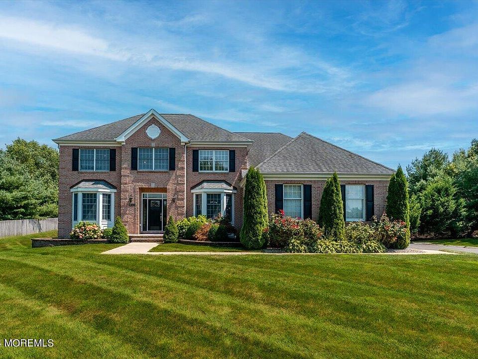 This elegant 3,400 sq ft brick center hall colonial in sought-after Beach View, Manahawkin, blends classic charm with modern farmhouse finishes. Enjoy a grand double-level foyer with a bridge staircase, rich hardwood floors, and a gourmet chef's kitchen with stainless steel appliances. The double-level sunken family room features Palladian windows overlooking a spacious backyard with an inground pool and shaded pergola on over 1 acre. Upstairs are 4 generously sized bedrooms and full baths with double vanities and ceramic tile. The unfinished basement includes a home gym. Sprinkler system included. Excellent schools and only 15 mins to the beaches of Long Beach Island. HVAC and HWH three years young.