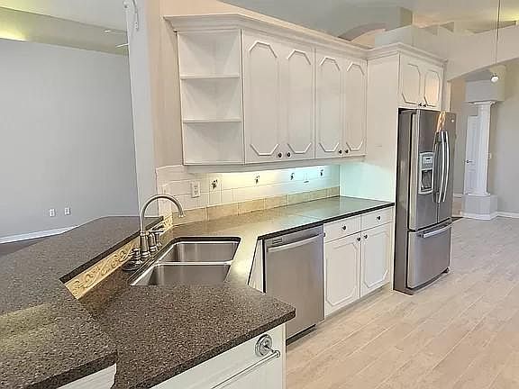 This one-of-a-kind home offers a sleek open-concept that has HUGE Great room with VERY HIGH Ceiling which boasts ample of natural light. The Living room has beautiful fireplace which opens to a formal dining room from one side and flows through a sliding door to the outdoor screened-in lanai from the other side. The kitchen features Stainless steel appliances, white cabinets with GRANITE countertops, crown molding and recessed lighting. It opens to a large eat-in breakfast Nock area. The Master's suite is situated for privacy with its private bath that has decorative double raised vessel sink vanity, garden tub, walk-in shower, walk in closet and separate water closet. The other 2 bedrooms share a bath, and a laundry room is also located off the garage. The cypress head Golf subdivision has GOLF COURSES, COMMUNITY POOL, TENNIS COURTS and is located in the top-rated schools' zones, close to the beaches, golf courses, parks, shopping, and restaurants. It is all close by, where kids can ride their bikes to elementary, middle schools, a nearby public park and can easily get together with their friends for a game of basketball or tennis. Hurry up and book your showing today.