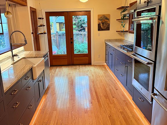 This lovely craftsman home combines period charm with stunning modern updates, including a remodeled kitchen w/ quartz counter-tops, 5 burner gas cook-top, double wall ovens and extensive cabinetry.