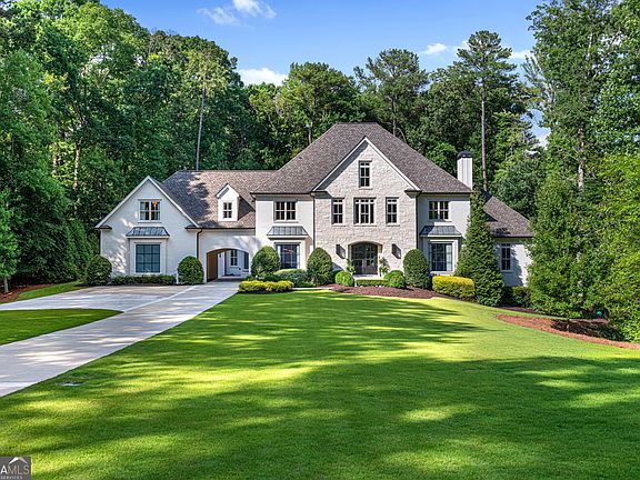 Tucked behind private gates on an expansive 2.1-acre estate in the prestigious Buckhead neighborhood, this exquisite residence is a stunning example of timeless design and refined living. Every element of the home has been thoughtfully curated to blend classical architecture with modern luxury. A dramatic two-story foyer greets you with a sweeping curved staircase and floods of natural light, setting the tone for the sophistication within. To one side, a richly appointed study showcases bespoke floor-to-ceiling millwork and a striking view of the private front landscape. On the other, the formal dining room impresses with detailed trim work, soaring ceilings, and elegant proportions ideal for both intimate gatherings and large-scale entertaining. The main living room offers a harmonious balance of grandeur and comfort, featuring a tray ceiling, a bold stone fireplace, and a wall of windows that seamlessly merge indoor and outdoor living. Adjacent is the chef's kitchen, a true centerpiece of the home, anchored by a stunning marble waterfall island and outfitted with top-tier appliances concealed within custom cabinetry. A burnished brass pot filler, sleek vent hood, and wine refrigerator complete this space designed for both form and function. Flowing naturally from the kitchen, the light-filled family room is a haven for relaxed living, with vaulted ceilings and expansive windows that frame views of the beautifully landscaped walk out turf backyard and open gracefully to an outdoor veranda with automated screens. The main-level primary suite is a serene retreat with a vaulted ceiling and wooded vistas. Its en-suite bath evokes a boutique spa experience, featuring a sculptural stone soaking tub, a dramatic glass-enclosed marble shower, dual vanities with ambient lighting, and his-and-hers dressing rooms finished in rich custom cabinetry. Upstairs, five well-appointed bedrooms each feature private en-suite baths. A separate guest suite includes its own living space and bathroom, offering a versatile area perfect for extended stays, children's activities, or a private lounge. The home also includes an elevator that serves all levels, leading to an impressive terrace level designed for indulgence and leisure. Highlights include a glass-front, climate-controlled wine cellar, a professional-grade home theater, a full fitness suite with a mirrored studio for dance, barre, or yoga, and an additional living area complete with a full kitchen and guest accommodations. Outdoors, this estate continues to elevate the lifestyle with a resort-style saltwater pool and tanning shelf, expansive flat lawn, and dual covered pavilions featuring a wood-burning fireplace and vaulted wood ceilings ideal for alfresco dining and year-round enjoyment. A gated area offers the perfect space for pets or play. This is a rare opportunity to own a truly bespoke residence in one of Atlanta's most sought-after addresses an estate that defines elegance, privacy, and timeless sophistication.