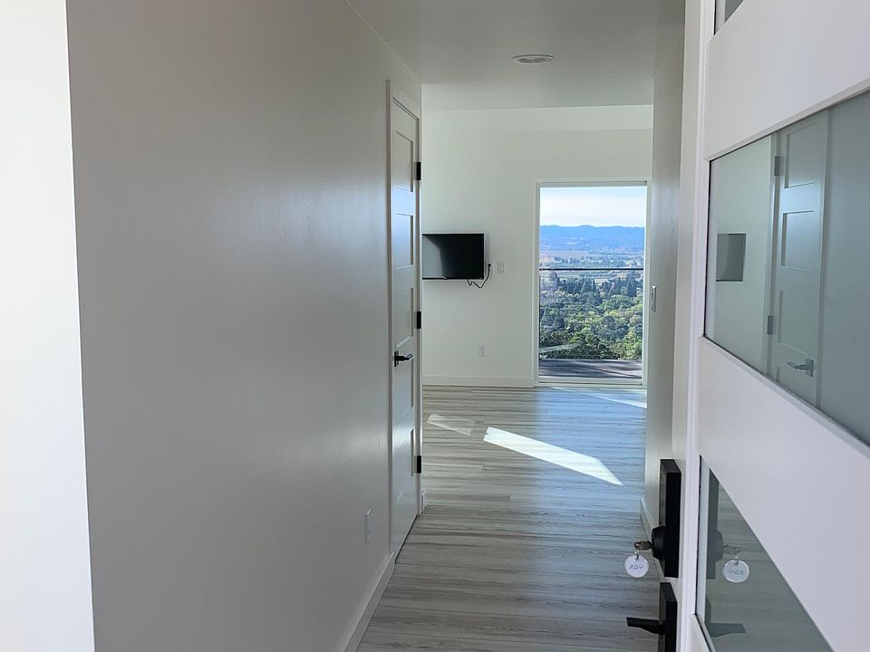 This 2-story house, built in 2021, is 850 square feet with 1 bedroom and 1full bathroom upstairs, 1/2 bath downstairs, and a deck facing the views. The property is located in Larkfield/Wikiup, a quiet single-family neighborhood, in the hills with incredible unmatched views of West Sonoma County. The property consists of 2 single family homes which is on almost 2 acres.