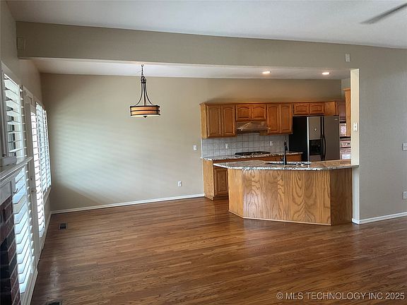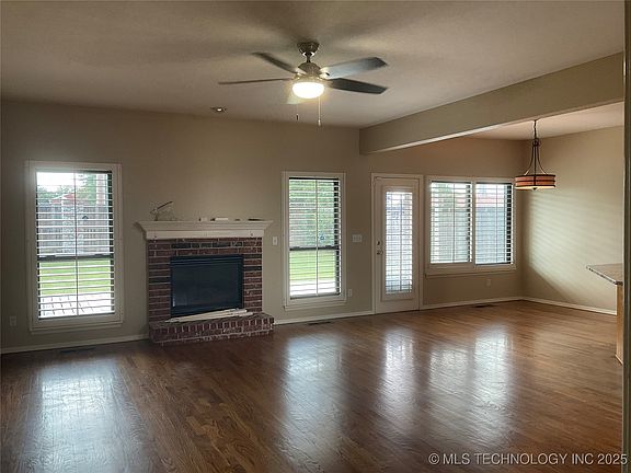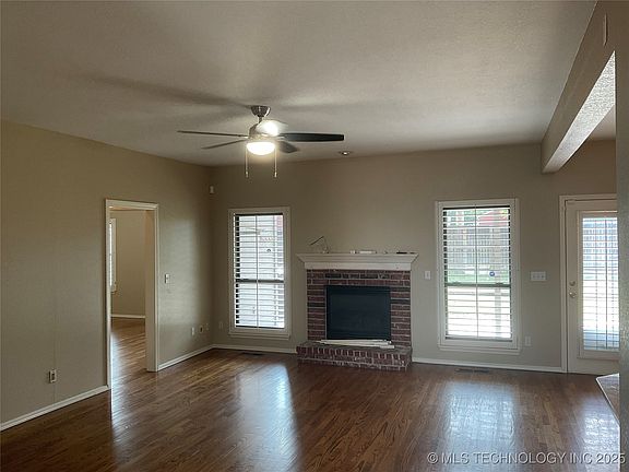 Beautiful 5/2/3 home in Jenks schools. Stunning entry hall bathing in natural light welcomes you to this warm and cozy home. Open floor plan ideal for family living. Wood floors downstairs. Spacious Living room has automatic fireplace. Kitchen has granite, pantry, gas range, wall oven, and microwave (new microwave installed prior to move in). Breakfast nook. Formal dining room w/ vaulted ceiling. 1/2 bath. Large downstairs primary bedroom was ample closet space and private bathroom. Bathroom features 2 sinks, walk in shower, and whirlpool bathtub. Another bedroom downstairs. Upstairs has 3 bedrooms. 2 bedrooms separated by jack and jill bathroom w/ 2 sinks. Additional bedroom, full bath upstairs. Bonus den/gameroom upstairs great for entertaining large crowds. Great closets and Additional storage space. Laundry room. 3 car garage. Privacy fenced backyard has great deck space for entertaining or hanging w/ the family. Hot tub. Storage shed. Pet restrictions/deposit may apply. No Smoking, No Sublease, No Waterbeds. Tenants are required to have renters insurance. Or we offer a Residents Benefits Package (RBP) for $55/month. Please ask for more details.