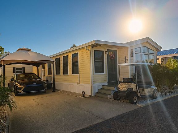 Welcome to Rainbow Village Resort-Pinellas County's first Airbnb- and VRBO-friendly community! Perfectly situated in the heart of Pinellas County, this highly sought-after resort-style neighborhood places you minutes from all major shopping, dining, entertainment, local and major airports, world-famous theme parks, and award-winning Gulf beaches. When it comes to convenience, lifestyle, and investment potential, Rainbow Village is unmatched. Whether you're looking for a place to call home, a seasonal Florida retreat, or a prime passive income-producing property, Rainbow Village checks all the boxes. Enjoy an incredible lineup of amenities, including a large heated swimming pool, gated access, WiFi and cable availability, clubhouse, pickleball, shuffleboard, fitness center, billiards room, library, planned activities, game room, on-site storage, pet area, biking, laundry facilities, and much more. Property Features: This beautifully maintained vinyl-sided 1-bedroom, 1-bath Expander home with a Bonus Room offers exceptional versatility. The bonus space can easily function as a home office, guest bedroom, craft room, or private retreat for your favorite hobbies. The home features a durable metal roof, vertical sliding windows, cathedral ceilings with two ceiling fans, and luxury vinyl flooring throughout, creating a bright and inviting atmosphere. Outdoor Living & Parking: - Two-car driveway - 12x10 covered parking gazebo - 12x12 backyard recreational gazebo perfect for relaxing or entertaining - 10x10 storage shed, which serves as a dedicated laundry room - Golf cart parking area with charging capabilities - Screen room for added comfort and enjoyment Interior Features: - Bright white kitchen cabinets with butcher block countertops - Deep single-bin sink with retractable spray faucet - Stainless steel glass-top stove - Three-door refrigerator - Microwave -Extra-large pantry - Bonus room for flexible living arrangements Bathroom Features: - New vanity - New toilet - Ship-lap and accent walls - Bathtub-shower combo This MUST-SEE property is packed with value and located in one of the most flexible, high-demand communities in the region. This opportunity won't last long!! CALL NOW to schedule your private walkthrough!