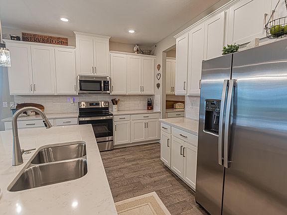 Welcome to the Antigua model by Taylor Morrison in Central Park, built in 2023 & filled with upgrades. This 4-bedroom, 3-bath home also features a versatile den/flex room, ideal as an office, playroom, or guest retreat. The open design flows from the chef's kitchen--complete with stainless appliances, quartz counters, butler's area & oversized pantry--to the dining & gathering room. Step outside to the screened lanai where peaceful water views create the perfect backdrop for relaxing or entertaining. The owner's suite offers dual sinks, garden tub, walk in shower, and custom closet with direct laundry access. Wood-look tile, custom lighting, and stylish finishes elevate the home beyond what the builders offer. Low HOA includes pool, pickleball, playground, dog park & more. Prime location!