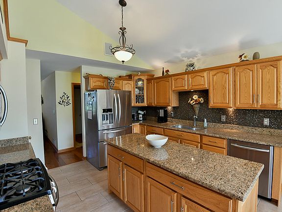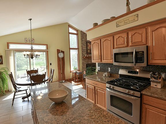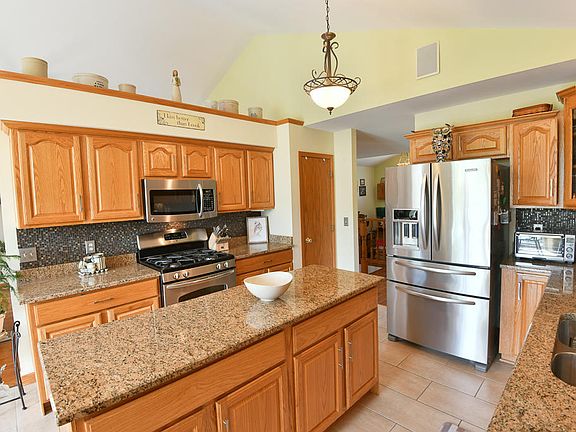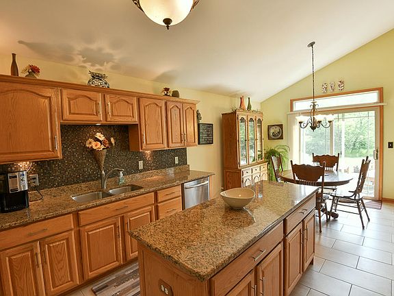 Expect to be COMPLETELY IMPRESSED!! Sprawling, open concept ranch perched on 1.25 acres is easy on the eyes. Latest features include huge eat-in area + remodeled kitchen with granite tops and hardwood flooring, with new sliding door leading to deck, overlooking Koi Pond and Flagstone patio.Brand new high efficient furnace. MASTER SUITE offers jetted tub and dual sink vanity. Gas fireplace in Great room with vaulted ceiling. Convenient first floor laundry.