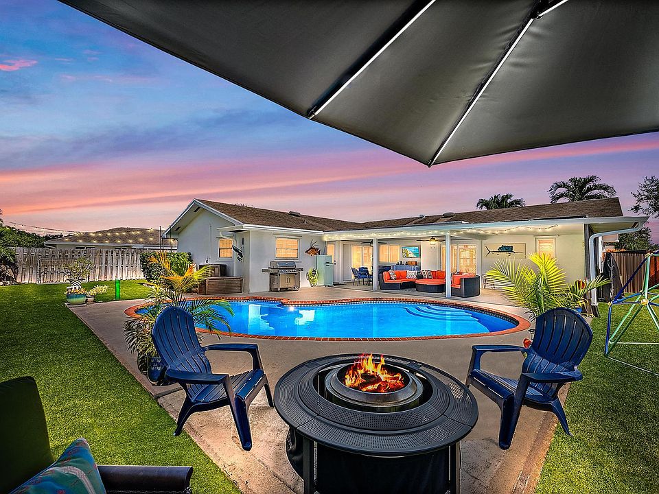 Customized resort-style entertainment areaLarge heated saltwater poolProfessionally designed bathroom renovationsQuartz countersLush turf backyardImpact glassExpansive covered patio