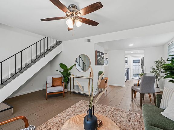 One of the best priced three-bedrooms in San Diego! This beautiful, centrally located townhouse sits on one of the most coveted locations in the complex. An end unit in the back of the community provides privacy and lush green-space. A private patio with access to the carport makes this feel like a single family home. One downstairs bedroom and 2 large upstairs bedrooms are perfect for a family, roommates, office space - you name it. Updates throughout. In-unit laundry and tons of inside and outside storage. Enjoy the community pool and playground year round. Pets allowed and VA APPROVED!! Come on over!