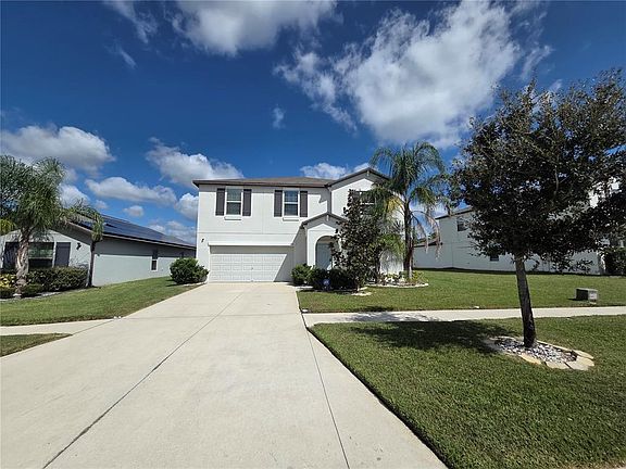 Will not last long, this move in ready 4 bedroom, 2.5 bathroom, over 2,600 sq ft home in Riverview’s sought-after South Fork community seamlessly blends comfort, style, and modern conveniences. Built in 2020, this move-in ready gem offers an open floor plan that connects the living, dining, and kitchen areas—perfect for entertaining family and friends. The gourmet kitchen is a chef’s dream, featuring stainless steel appliances, a stylish backsplash, and lots cabinetry to make meal prep a delight. The oversized living room, creating a warm and inviting atmosphere, and natural light. Large windows overlook the oversized backyard with water view—with more than enough space to add a pool and still enjoy a lush yard for gatherings and play. Upstairs, the luxurious owner’s suite with a large walk-in closet and ensuite bathroom with dual sinks. Additional bedrooms are equally spacious, perfect for family or guests. The upstairs loft/bonus room offers flexibility for game nights, movies, exercise area, or a home office. This home is located in a vibrant, a community with access to resort-style pools, playgrounds, parks, sports courts, and walking trails. Enjoy the convenience of nearby shopping, dining, and easy access to major highways for stress-free commutes to downtown Tampa, MacDill AFB, and area beaches. Schedule your private showing today and experience this perfect home with elegance, comfort, and convenience.