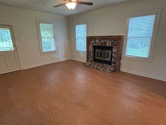 Covered carportBrand-new refrigeratorMature treesWood-burning fireplaceSpacious lotAdjoining dining area