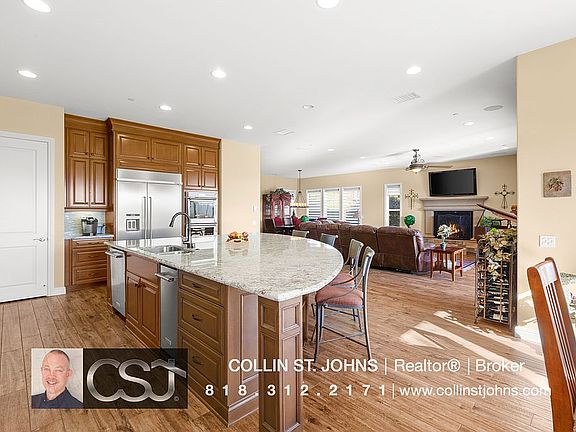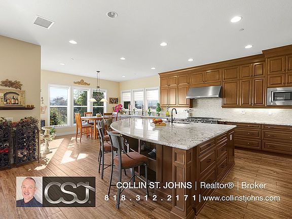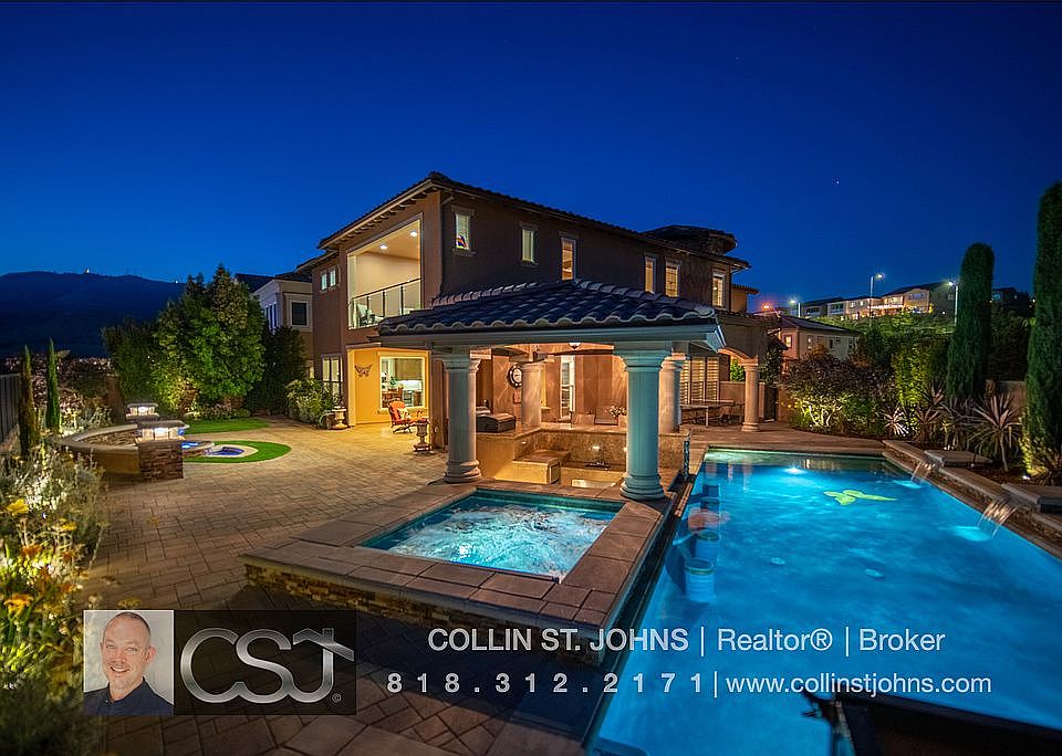 The BEST LOCATION in The BLUFFS!! Oversized lot w/ PANORAMIC sunset and city light VIEWS!! Unique positioning - open space/no neighbor to the south. NEWLY BUILT in 2015. Features include: OWNED solar..5 Bedroom En Suites..Master Suite features custom raised fireplace, trey ceilings, crown moldings, custom coffee bar w/fridge, expansive glass sliders, and deck with FABULOUS VIEWS!..Master suite bath boasts a vanity, and a luxury walk-in rain shower w/jetted tub - a custom configuration that is a must see..Custom heat lamp..Dual walk-in closets..Kitchen features highly upgraded cabinetry (floor to ceiling/wall to wall) with soft close doors & drawers, massive center island, custom backsplash, wine refrigerator, and 48" stainless built in refrigerator..Wrought iron spiral staircase..Extensive use of hardwood, custom tile, and crown moldings throughout..Living room features fireplace with custom raised hearth, and an expansive slider leading to a one of kind backyard!..Home Theatre System w/ outdoor speakers..Luxury outdoor living space w/ fireplace..Custom chlorine-free pool and spa with swim up wet bar all built out like nothing you've ever seen!..Custom motorized pool/spa covers..Built-in BBQ..Custom fountains, landscaping w/underground irrigation..Garage features epoxy flooring, custom overhead storage with drop down ladder, and electric car charging..JUST TOO MUCH TO LIST!..24 Hr Guard Gated Community * Walk to Porter Ranch Community School, and resort like community center!