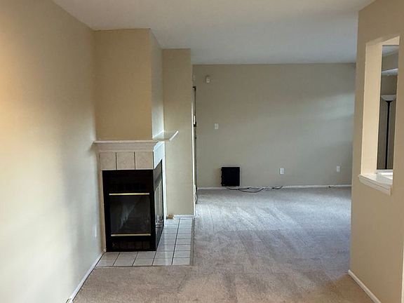 This well-maintained unit features wall-to-wall carpeting, a cozy wood-burning fireplace, and multiple closets for ample storage. The primary bedroom includes a private half bathroom for added comfort. The kitchen is equipped with a refrigerator, dishwasher, gas range, and range hood, complemented by ceiling fans throughout the unit.
