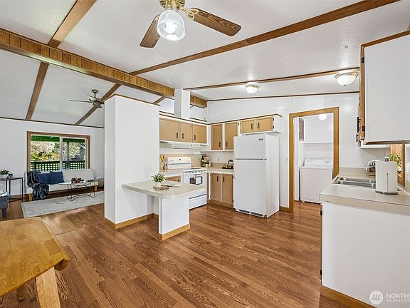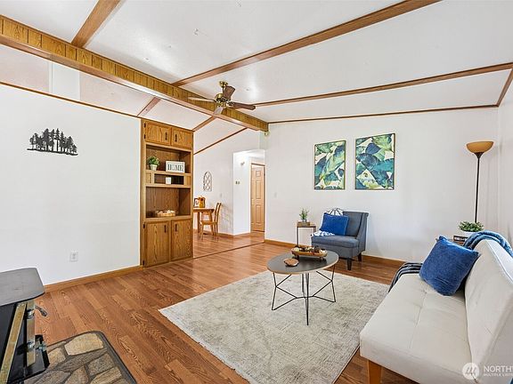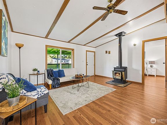 Beautifully refreshed 3-bed, 2-bath Buckley rambler with 1,416 sq ft. Updated inside and out with new paint, flooring, and more. Open living/dining area plus a bonus room with private entrance—ideal as an extra bedroom, office, or studio. Spacious lot nack8ng to greenbelt offers RV parking, room for a shop, and so much more! Enjoy quiet evenings on your covered front porch and entertain guests on the expansive back deck. Quiet neighborhood close to schools, parks, and downtown Buckley. Move-in ready and full of potential!