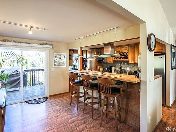Gardeners paradise in backyard. Updated gourmet kitchen with eating space, garden window, and breakfast bar. Dining room with slider to deck. Laminate floors up and down, vaulted ceiling, wood fireplaces up & down, double door entry, and 2 sliders to huge deck off living room. 3/4 bath off master. 3 bedrooms up & 1 bedroom down. Huge family room with slider to patio. Greenhouse, storage shed, garden boxes, RV parking, fenced backyard. Cul-de-sac location. Move-in condition.