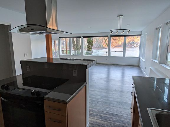 RIVERFRONT Apartment One of a kind, exquisite, architect designed riverfront duplex in a park like setting. This lower level apartment is only 6 miles from downtown Portland and a 1/2 mile to downtown Milwaukie and the Max transit station. Walking and biking trails are connected at both ends of the 4 block long avenue where this house is located. Large windows allow panoramic views from the master bedroom, living room, dining room and kitchen. The view is the Willamette River along Elk Rock Island, Dunthorpe and Peter Kerr Botanical gardens across the river and up to the Waverley Country club and OHSU. The master bathroom has a custom walk-in shower with a river view window, a rain-head spray from the ceiling, a hand held sprayer and body spray heads along the wall. The large deck with glass balusters is overlooking the Willamette river and has stair access to the yard and river steps. Elk Rock Island Park, Spring Park and Kellogg park are all within a few minute walk. There is easy walking distance to banks, restaurants, Post Office, etc. in downtown Milwaukie. Amenities include: Hydronic radiant floor heating throughout (warm toes), glass top stove, stainless steel refrigerator with bottom freezer, drinking water filter/dispenser built into the kitchen sink, laundry closet with washer and dryer hookups. Electricity, gas, water and garbage are the utilities which are an additional $190 per month. The entire property is no smoking. Cleaning deposit is $800 with $600 refundable. Small pet deposit is $200. Large pet deposit is $400 (over 40 pounds). $10 per month per small pet and $20 per month for large pet. Renter's Insurance of $100,000 is required. $40 per adult screening fee (non-refundable) Street parking Electricity, gas, water and garbage is included for a monthly fee of $190