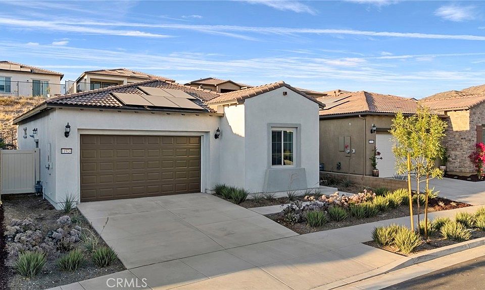 Welcome to 11920 Shadeland, situated above Temescal Valley in the Cedarwood neighborhood of Terramor, a vibrant 55+ Active Adult community. This brand new single-story rental home features 2 bedrooms and 2 bathrooms, and is ready for you to move in! This lovely home offers a spacious great room that seamlessly flows into a gourmet kitchen, complete with an oversized island topped with Calcutta quartz countertops and upgraded walnut shaker-style cabinetry. The kitchen is equipped with stainless steel appliances, including a designer hood, convection microwave, full-size oven, and a 6-burner cooktop. The floors are adorned with luxury vinyl planks in a warm walnut hue, with plush carpeting in the bedrooms for added comfort. The primary ensuite offers an oversized stand-up shower, dual vanity, walk-in closet, and a convenient linen closet. The second spacious bedroom is complemented by a hallway bathroom featuring a relaxing soaking tub. The virtually maintenance-free backyard is beautifully designed with system pavers and includes an enclosed patio, perfect for outdoor enjoyment. Other features include Recessed lighting, an indoor laundry room with hookups, an attached two-car garage, 10-foot ceilings throughout, a house fan, and solar power to keep your electric costs low. Included in your lease is access to the social and recreational Terrace Club, which offers two community clubhouses, a gym, an outdoor pool and spa, an indoor saltwater pool, bocce ball and pickleball courts, and miles of walking trails to keep you active and engaged. You'll also enjoy close proximity to world-famous Tom's Farms, shopping