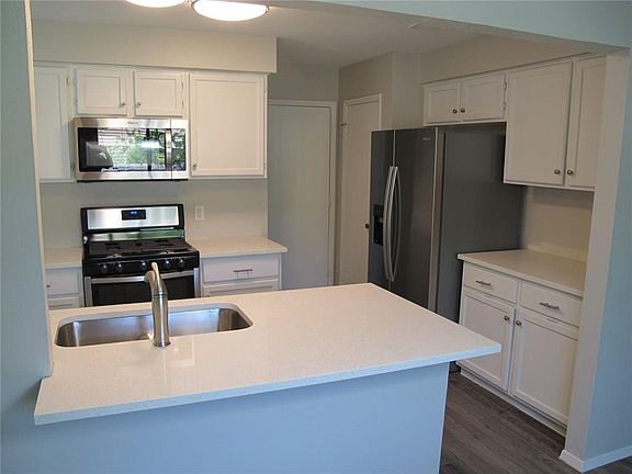 Recently remodeled home with recent paint, recent carpet and updated flooring and lighting.The modern kitchen has quartz countertops, stainless appliances including the frig with water & ice. The kitchen is bright white, open & airy with a breakfast bar. Large family room with fireplace and lots of natural light. All bedrooms have walk-in closets, ceiling fans, and 2" faux wood blinds. Nice fenced backyard with grass and a patio! You won't be disappointed! Available May 1. FEMA - Unknown No smoking allowed. Pet friendly with breed restrictions. The tenant is responsible for all utilities and yard maintenance.