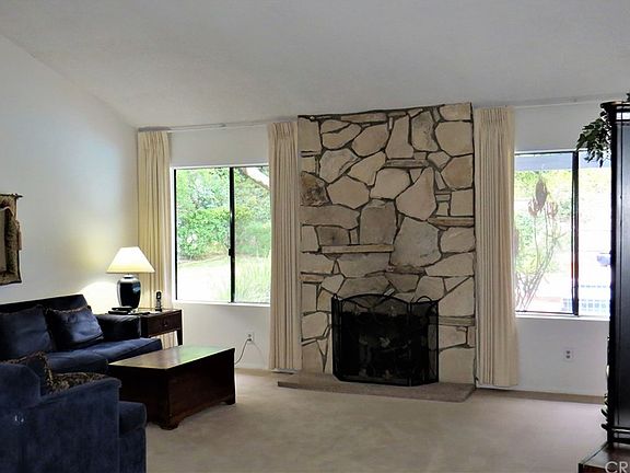 In a serene setting, high above the boulevard, on a cul-de-sac street and nestled in the hills of Porter Ranch lies this highly sought after single story home on a sweeping corner lot. Mature landscaping, a concrete driveway and a very inviting brick walkway leads up to this 3 bedroom 2 bath home with family room. A beautiful custom double door entry takes you into a spacious living room with a floor to ceiling fireplace and high vaulted ceiling. The kitchen has direct access to the 2 car garage and a breakfast bar that opens up to the light and bright family room again with a high vaulted ceiling as well as sliding glass doors that lead out to the backyard. An extra wide hallway accesses two bedrooms, a full bath and large master bedroom suite with a vaulted ceiling, large closet and a view of the lush backyard through sliding glass doors. The master bath has dual sinks, a walk-in closet and separate shower and commode. The backyard is very private with mature trees and landscaping all around creating a feeling of your very own oasis with a sparkling pool, spa and covered patio to complete the picture. Important to note is that the swimming pool has a "Lami-Glass" surface that has a lifetime transferrable warranty on it.