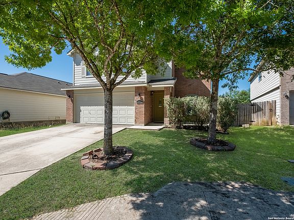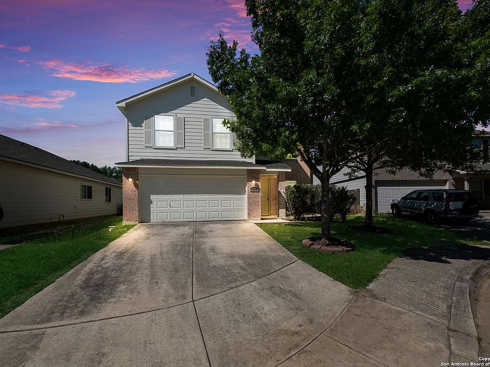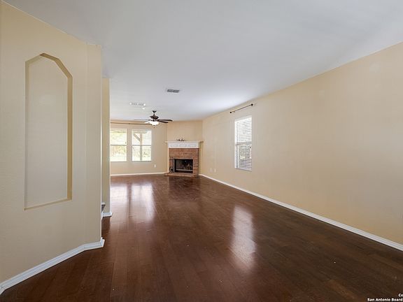 MOTIVATED SELLER IS WILLING TO ASSIST BUYER WITH SOME CLOSING COSTS WITH A GOOD OFFER! ROOF IS LESS THAN ONE YEAR OLD!! Freshly painted exterior, what a PLUS!! Then you walk into beautiful wood floors and a cozy brick fireplace in your new home! Large formal dining and living room combo, great for entertaining. Walk around to the open kitchen with an island for extra counter and cabinet space. Stainless steel appliances, fridge, washer and dryer convey. The wood floors follow up the stairs and into the large game room that can be used for any extra space you need. Extra living area, office area, play room, crafts, etc. Large primary suite with walk in closet, double vanity in bath with separate tub and shower. Fresh paint and brand new carpet in all three bedrooms. Large back yard with huge patio slab and beautiful patio cover with metal roof facing greenbelt with NO backyard neighbors. Neighborhood has a great playground and park for the kids. Come make this your home today!