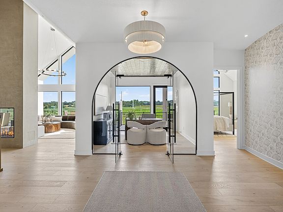 Welcome to Skyfall and the 2025 Homeshow—where luxury meets function, and style meets serenity. With panoramic backyard views that stretch for miles, this Scandinavian Modern home by Showtime Homes is designed for those who live boldly, work efficiently, and unwind like Bond. Step through the front door and feel the pull of the panoramic view, framed perfectly through a sleek home office in a true “see-through” design that connects you to nature from the moment you arrive. To the left, the open-concept kitchen and dining area radiate minimalist elegance, ideal for effortless entertaining or unwinding at day’s end. To the right, the primary suite is a tranquil escape, with direct access to a private laundry corridor and a stunning Zen-inspired wellness retreat, featuring a custom sauna for the ultimate in daily recovery, worthy of any operative. Also on the main level, a spacious guest bedroom with en-suite bath provides comfort and privacy, while a stylish half bath is perfectly positioned for visitors. Head to the lower level, where elevated design continues: two more generously sized bedrooms, each with its own en-suite baths, offer sanctuary for guests or family. A sunken lounge and gaming area invite relaxed evenings and high-energy fun. And somewhere, behind a door you may not notice at first… a secret space awaits—perfect for those more covert moments of connection and conversation. Martini optional.