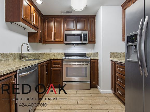 ~1 Month FREE~ Sublime and Spacious Two Bedroom with Loads of Natural Light, Contemporary Style, Private Balcony, Stainless Steel Appliances, Washer/Dryer, and TWO Parking Spaces Included ~ In Gorgeous Valley Village! *MOVE-IN SPECIAL* **Resident will receive a one-time credit of 1 Month FREE off of the Market Rent Price of $3,195, on approved credit. The net effective rent shows the savings over the entire 13-month lease term. The advertised price is based on the NET EFFECTIVE RENT.* Pictures and descriptions are of a Model Unit ~ Floor Plan and Details may vary. Welcome to Serene Luxury Living! Step into this elegant concrete building adorned with white accents and surrounded by meticulously landscaped grounds, offering a serene ambiance. The spacious one-bedroom unit is bathed in natural light pouring through expansive windows, creating an ideal retreat to call home. Inviting Interior Space: As you step inside, you'll immediately feel the openness of the space. Abundant natural light streams through large windows, complementing the modern lighting fixtures that accentuate the beautiful hardwood vinyl flooring. Seamless Indoor-Outdoor Living: The open-plan layout, coupled with large windows and sliding glass doors, provides plentiful natural light and seamless access to your private balcony. Step outside and embrace the indoor-outdoor living experience. Gourmet Kitchen Delight: Indulge your culinary passions in the chef's delight kitchen, featuring ample custom-built hardwood cabinets paired with exquisite granite countertops. Stainless steel appliances, including a refrigerator, stove/oven, microwave, and dishwasher, await your culinary adventures. Contemporary handles, knobs, and light fixtures add a stylish touch, creating a chic and functional space. Luxurious Bedroom Retreats: The generously sized bedrooms feature stunning hardwood vinyl flooring, modern lighting, large sunlit windows, and ample closet space with custom built-ins. The primary bedroom boasts a spacious walk-in closet, offering a cozy and inviting retreat perfect for unwinding after a busy day. Spa-Inspired Bathrooms: The bathrooms are equally impressive, showcasing well-lit vanity mirrors, storage cabinets, and luxurious soaking tubs with shower options enclosed behind glass doors. Charming custom tile backsplashes add a touch of elegance to the space. Convenient In-Home Laundry: Enjoy the convenience of having a washer and dryer right in your home, making daily chores a breeze. Parking Convenience: Enjoy the convenience of two included parking spaces, providing easy access and added value to your living experience. Pet-Friendly Haven: Bring your furry companion along to share in the comfort of your new home for a small monthly pet rent. This residence warmly welcomes pets, providing a perfect haven for you and your beloved pet. Come home to this exceptional abode! Available for an immediate move-in. LEASE TERMS: One Year Lease Pictures and descriptions are of a Model Unit Floor Plan and Details may vary Square Footage is approximate. Showings may not be 1-on-1. Listed pricing and special offers are only valid for new residents. Pricing and availability are subject to change at any time. Red Oak does not warrant or represent that image renderings on this website are an accurate representation of every floor plan available at the Property. Floor plans may vary unit by unit and by location at the Property. Please contact the Leasing Office to schedule a tour of the Property and the particular unit you are interested in. Pricing and availability are subject to change at any time.