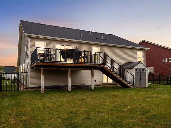 Immaculate 2020 three-level split on a quiet cul-de-sac with standout curb appeal. Over 2,600 FSF, 4 beds/4 baths and 3-car garage. Step in and feel the volume: vaulted main level with wide-plank flooring, white enameled cabinetry, subway tile, gas range, and an oversized quartz-style island built for gatherings. Just a half-flight up, the living room centers on a cozy gas fireplace and walks out to a maintenance-free deck with aluminum rail—perfect for sunset dinners. Private owner’s suite with dual sinks and walk-in closet, plus two additional bedrooms and a full bath. Finished lower level delivers a huge family/rec room, dedicated flex/work zone, 4th bedroom, full bath, and great storage. Outside, the fully fenced backyard (with shed) is ready for pets, play, and parties. Easy living with modern systems, thoughtful finishes, and quick access to parks, trails, community pools and conveniences.