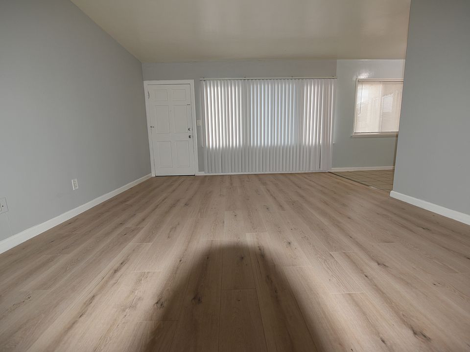 Bonito apartamento de una habitacion y un bano, con garaje y lavanderia, recien pintado, suelo laminado nuevo en el salon, aire acondicionado de ventana en la habitacion, persianas nuevas, buen barrio, cerca de la escuela. 310 three 5505 two 9
