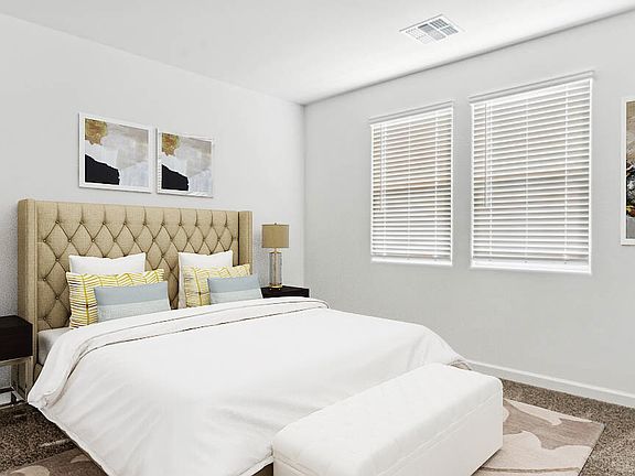 BRAND NEW | Estimated Completion February 2025 | Pool Sized Lot w/ a Double Gate | The Abbot. This charming 3-bedroom 2 bath home is exactly what you have been looking for! The floor plan features a separate dining off the kitchen for all your family get-together events. Interior finishes include granite kitchen & bathroom counter tops, espresso cabinets, and tile flooring throughout, except the bedrooms. Smart home technology is included along with a 14 seer HVAC and energy saving features. Also, this home includes stainless steel appliances, 220v pre-wire in the garage, 2'' window blinds, garage door opener, rain gutters, plus front yard desert landscape. Come see this home in the desert's most sought after hidden gem, Magma Ranch Vistas!