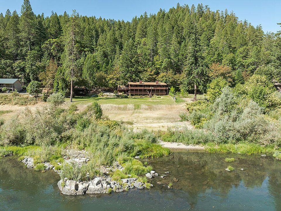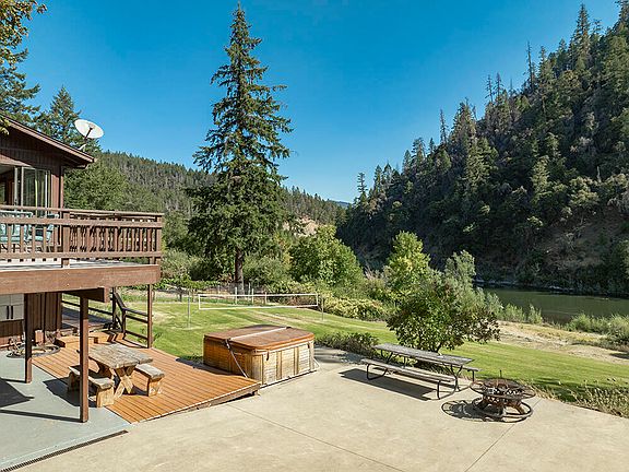 Stunning Rogue Riverfront Lodge-Style Home in the Desirable Wilderness Town of Galice! Magnificent River Frontage & Unimpeded Views of the River & Surrounding Mountains make this a Shining Star in the Arena of Riverfront Homes. Light & Bright Home w/Tons of Windows & Huge Full-Length Upper & Lower-Level Decks. Great-Room Floor Plan w/Vaulted Ceilings, Beautiful Kitchen w/Hickory Cabinets, Granite Counters, & Stainless Appliances. Huge Main-Level Master Suite offers French Doors w/Direct Deck Access, & Bath w/Dual Vanities. Lower Level Bedrooms are Impressive & Nicely Separated, w/Full & Half Bath, Laundry & Deck Access! Two Car Garage, Plus Carport. Super-Cute Separate Studio Cabin w/Full Facilities & Large Deck! Concrete Drive, Patio w/Hot Tub, & Huge Parking Area! Level Land that just fades into the River. Access to Thousands of Acres of Government Land, Trails, Creeks & the Rogue Wilderness! Just down from Galice Resort offering River Adventures & Live Music in Summer! Superb VRBO!