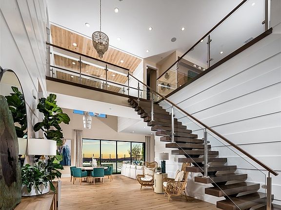 Brand new construction by Toll Brothers, Summit Collection at Westcliffe - an exclusive gated, hillside living community in Porter Ranch. Final opportunity to purchase direct form the builder. This home has been professionally curated by our award-winning interior design team just for you, including cabinets, hardware, countertops, backsplash, shower tiles and European White Oak flooring! The popular Vito floor plan offers a welcoming covered entry that reveals the soaring 20’ high, two-story foyer featuring a dramatic floating glass staircase, leads to the spacious great room with upgraded 60” fireplace and 20 feet wide x 9 feet high sliding glass door, two-story casual dining area, and desirable luxury outdoor living space beyond. This home site’s rear yard with glass panel rear wall looks out to the rolling green mountains to the North and established hillside neighboring communities. The well-designed gourmet kitchen is equipped with upgraded Wolf appliances and a Sub-Zero refrigerator, an impressive, large center island with a waterfall-edge and breakfast bar, plenty of counter and cabinet space, and ample walk-in pantry. The oversized primary bedroom suite features a retreat, palatial walk-in closet, and a deluxe upgraded primary bath with dual vanities, large soaking tub, luxe shower with seat and two glass doors, and private water closet. Central to the generous loft, the secondary bedrooms feature sizable closets, two with private bath, one with shared hall bath. Additional highlights include a desirable first floor bedroom with closet and private bath with standing shower, first floor office, convenient powder room and drop zone, 2nd floor laundry, and additional storage. Home is complete with 2 car garage entering at the kitchen drop zone and separate 1 car garage entering at the office/first floor bedroom hallway. With a SunPower solar system, upgraded electrical options throughout, and Toll Brothers warranty included-this is a must see! You can move in to this brand new home by June 2024!