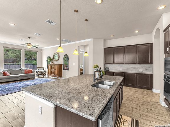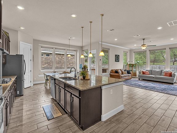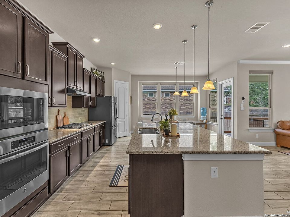 BACK TO SCHOOL SPECIAL with an assumable loan at 2.75 interest rate! Welcome to your dream home in the highly sought-after Fronterra at Westpointe! This spacious 5-bedroom, 4-bath beauty offers open-concept living at its finest, perfect for families who love to entertain or just enjoy plenty of room to spread out. Downstairs features four bedrooms and three full baths, including an oversized primary suite with large windows for tons of natural light, a walk-in closet, and a spa-inspired ensuite-complete with a garden tub, double vanity, and a huge walk-in shower. The heart of the home is the gourmet kitchen, boasting a massive granite island, built-in stainless steel appliances, gas cooking, gorgeous backsplash, walk-in pantry, and tons of cabinet space. Enjoy meals in the spacious breakfast area or the formal dining room-there's room for every occasion! Coming in from the garage, you'll love the modern mudroom with ample shoe storage and hooks for all your bags and backpacks-no more morning chaos! Upstairs, discover a fantastic flex space that can be your family room, game room, home gym, or movie lounge-plus the 5th bedroom and 4th full bath, perfect for guests or multi-generational living. Step outside to a private backyard oasis featuring a covered patio and no neighbors behind-plus extra space to the side for added privacy. Enjoy peaceful evenings or fun weekend BBQs! Located in the top-rated Northside ISD, this home is close to shopping, dining, and major highways (1604, 151, and 410), making commutes a breeze. Photos are previous to current occupant. This property is currently being offered for rent as well.