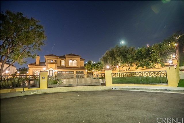 This luxurious, Tuscan-inspired Mediterranean Villa, on a cul-de-sac, is one-of-a-kind, the privately gated property sits on over 1/2 acre w/ an open formal LR & sitting area, delicately hand-painted ceilings & a grand, Italian marble & iron-work staircase. A formal dining room next to a chefs-kitchen w/stainless steel appliances throughout, custom solid-maple cabinets, granite slab counters, marble backsplash accents, walk-in pantry & large island overlooking the breakfast nook & family room. Over 5700 sq. ft. with built-in storage throughout, 5 large BR and 6 BA, this property also boasts an impressive master sanctuary. No detail was left out in the first-class master bath, which features exquisite Italian marble throughout, sitting area, dual-side stone fireplaces, stand-alone deep tub, separate shower and walk-in closets. The master suite includes a home gym w/steam room and sitting area, which opens onto a private second-floor balcony overlooking the views below and backyard. The entertaining spaces flow outside to the enclosed patio featuring an outdoor kitchen w/BBQ, custom-painted cabinets, sink, grand sitting & dining areas, & a unique, custom-built wine room for over 5,000 bottles w/more space for entertaining. The impressive outdoor space is layed with a grasslike area and fountains with hand-painted Italian tiles, a lighted tennis court, swimming pool with spa and toddler pool.