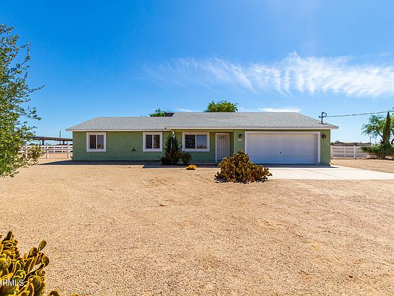 The Seller will be looking at all offers thru Feb 11, 2025 at noon so Buyers grab this deal and send in your biggest and best. Seller reserves the right to choose an offer at anytime. This is the home you have been waiting for! Bring your horses, or toys! Do you like Gardening? Plenty of room to make that garden full of fresh veggies you have been thinking about, or plants and flowers. This is a 3 bedrm, 1 3/4 bath horse property that is move in ready. Security doors, tile and laminate flooring, new paint thru out, new roof, large open kitchen/dinning area, French closet doors in all bedroom closets, large shelving in laundry room to use as a kitchen pantry plus storing extra cooking gadgets. Desert landscaping with irrigation to all of the trees. 2 car garage and so much more.