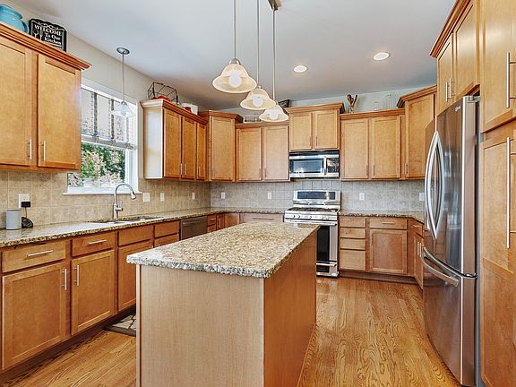 Beautiful Better than new home!Gorgeous Maple and Granite Kitchen with Stainless appliances!Hardwood floors thru-out this turnkey home!1st floor boasts formal entryway, flex room w/ French doors, nice sized dining room, huge open family room w/ gas fireplace open to kitchen/breakfast room, first floor laundry w/ sink + storage w/ nice sized 1/2bath. Up your dual entry hardwood staircase you will find 3 generous bdrms plus a huge loft/optional 4th bdrm + custom Master bath w/ soaking tub, walk in shower + dual vanities.Full unfinished basement w/ tons of storage awaiting your finishing touches. Huge fenced in yard w/ separate dog run.Beautifully designed paver patio + fire pit for relaxing or entertaining. Extra deep 3 car garage/new siding on this home.Look what you get for this price!