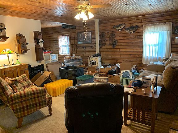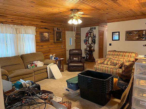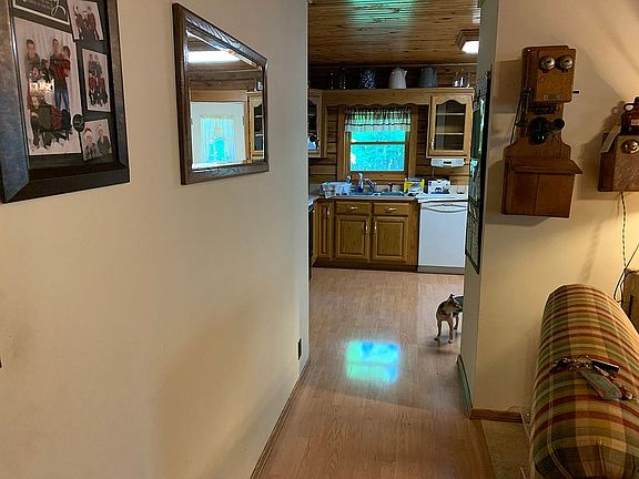 Log cabin on a private lane in the woods. Also has a 960 square foot pole barn.
