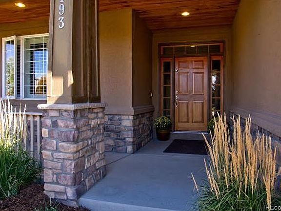 Spacious stucco and stone two story home located in a quiet area of coveted Hawk Ridge Estates. Very open kitchen family room combination! Cooks kitchen with gorgeous Pompeii slab granite countertops, Fisher & Paykel 6 burner gas cooktop, Viking vent hood, cherry cabinets, pantry and abundant prep space. Overlooking the yard and family room this is truly the heart of the home. Two story family room with a gas fireplace and built in shelves. Light fills this home and makes it warm and inviting. A curved staircase leads to 4 upper bedrooms including a Master Suite with vaulted ceilings, sitting area, luxurious 5 piece bath and a spacious closet. Full unfinished basement with 9 foot ceilings and lots of windows. Sorry the exercise equipment isn't included! Very deep extra large garage. Professionally landscaped for seasonal color, privacy and ease of maintenance. Fruit trees and a garden space too. Partially backing onto Association Open Space this lot affords extra privacy.