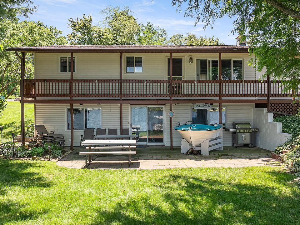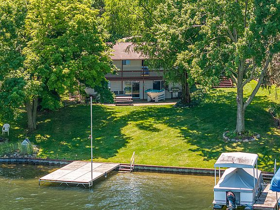 Come enjoy some lake living at beautiful all sports Lake LeAnn. Relax and kick back with your very own 86 feet of prime lake front! This 3 bed, 2 full bath home is located on a quiet Cul de sac on the highly desired South Lake. This cozy lake home features a large main level living space with wood beam ceiling features and access to rear deck, 3 bedrooms on main level with primary bedroom attached to full bathroom. Lower level walkout basement boasts a spacious kitchen / dining area and great additional living space all with a great view of the lake. Stone hearth / fireplace area also available for a wood burning stove to be added if desired. Beautifully finished lower level full bathroom in 2023. Huge laundry room area with additional storage and utility room adjoining.