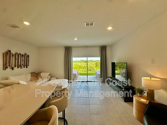 Welcome to your new home in the Edgestone community in Palmetto, FL! This almost new 3-bedroom, 2.5-bathroom townhome offers almost 1500 sq. ft. of inviting living space. Step inside to an open-concept design featuring neutral tones, modern finishes, and abundant natural light. The kitchen, located towards the back of the unit, is a chef's dream, fully equipped with stainless steel appliances, ample counter and cabinet space, and a large island perfect for meal prep and entertaining. It flows seamlessly into the living and dining areas, with a large sliding door that opens onto the back patio. Enjoy peaceful views of lush greenery! A convenient half bath completes the first floor. Upstairs, the spacious primary suite is positioned at the back of the unit and features a walk-in closet and a luxurious ensuite with a walk-in shower. At the front, two additional bedrooms share a full bath. For added convenience, the property includes an in-unit washer and dryer, a one-car garage, and a concrete driveway. As a resident of Edgestone, you'll have access to a beautiful pool and cabana area!