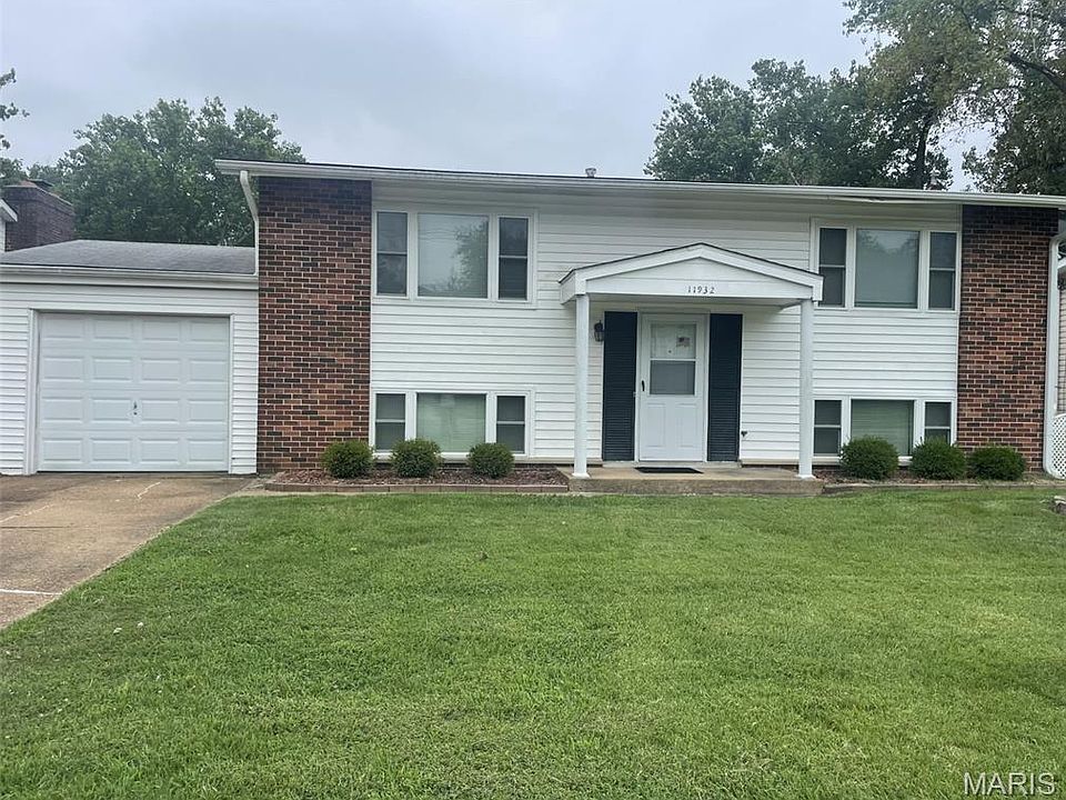 This charming split-level home offers two levels of comfortable living and entertaining space. The main floor boasts a bright living room with a large picture window, and an open dining area with ceiling fan that flows into the kitchen featuring stainless steel appliances and tiled back splash. Two spacious bedrooms with wood floors and a full bath complete the upper level. The walk-out lower level expands your living space with a generous family/recreation room highlighted by a cozy fireplace with gas hook up surrounded by brick hearth, along with a third bedroom and half bath. There is also the convenient laundry/storage room with large closet and washer and dryer to stay! Enjoy outdoor living on the deck overlooking the fenced backyard that backs to the common ground's open green space, or relax on the covered patio below—perfect for entertaining! Additional features include a 1-car garage, double-wide driveway, garden shed, and low-maintenance vinyl siding with brick accents. Ideally located near shopping, dining the Maryland Heights Rec Center, and Creve Coeur Park and with easy access to Highways 270, 70, 141 and the Page Extension! NEW roof to be installed before closing. NEW electric panel and clear Maryland Heights Inspection! Fireplace offered as-is. *Pictures containing furniture have been virtually staged.