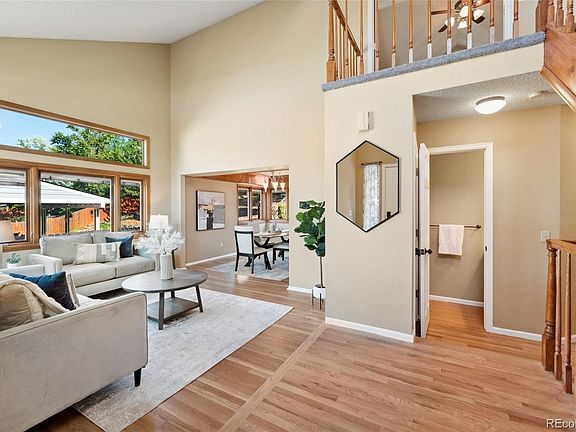 Over $80K in updates over the past two years have brought new life to this beautiful home, including a new roof, fresh exterior paint, new deck finish, new furnace, new A/C unit, new water heater, new carpet, and refinished solid wood flooring. Seller-owned solar panels boost energy efficiency! Ideally situated within walking distance to Skyline Park and the soccer fields, with easy access to biking trails that lead to Olde Town. King Sooper, Animal Urgent Care, Starbucks and more essentials just 5 minutes away! Costco, Home Depot, Lowes and more major retailers less than 10 minutes away. Restaurants, sports activities and specialty stores are all around! Truly in the heart of it all! This thoughtfully designed two-story home features a spacious layout filled with natural light, soaring ceilings, and expansive windows. Rich hardwood flooring runs throughout the main level, creating a warm and welcoming feel from the moment you step through the grand entrance. The front living room flows into a formal dining area, while the kitchen is outfitted with granite countertops, stainless steel appliances, and an island that overlooks the cozy family room with a gas fireplace and direct access to the oversized deck. Upstairs, the vaulted primary suite feels like a retreat, complete with a luxurious five-piece bath and a generous walk-in closet. Additional bedrooms offer flexibility, and the finished basement adds even more with space for a fifth bedroom, home office, or bonus living area. Outside, the fully fenced, tiered backyard is designed for relaxing and entertaining, featuring a large deck, tranquil koi pond, and mature landscaping. A concrete pad on the side of the home provides RV parking. The Light Rail Gold Line at Wheat Ridge Station is expected to become a future transit hub, adding even more convenience. Quality schools nearby, quick access to Denver and the mountains. Neighborhood streets are a loop, not a cut through! This house ready to be a home again!