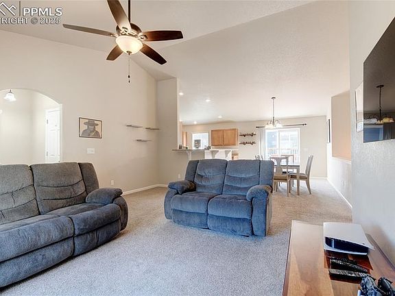Welcome to , a spacious and inviting home located in the beautiful Courtyards at Woodmen Hills North in Falcon, Colorado. With 4 bedrooms, 3 bathrooms, a 2-car garage, and over 2,100 square feet of living space, this home offers comfort, functionality, and charm at every turn. Step inside to find a bright and open layout featuring vaulted ceilings, a generous family room, and a large dining area—perfect for entertaining or everyday living. The kitchen flows seamlessly into the main living space, making it easy to stay connected with family and guests. The primary bedroom includes direct access to a private deck, offering a peaceful retreat for your morning coffee or evening wind-down. Downstairs, the finished basement adds even more living space with a spacious second family room, a newly finished bedroom, and a freshly updated bathroom—ideal for guests, teens, or multigenerational living. Nestled in a desirable community close to schools, parks, and local conveniences, this home is the perfect blend of comfort and Colorado living. Come see why is the one you’ve been waiting for!